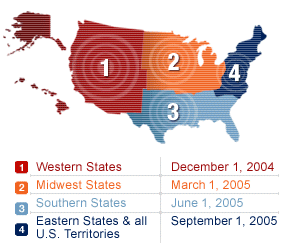 Free credit reports will be phased in during a nine-month period, rolling from the West Coast to the East beginning December 1, 2004. Beginning September 1, 2005, a free credit report will be accessible to all Americans, regardless of where they live.